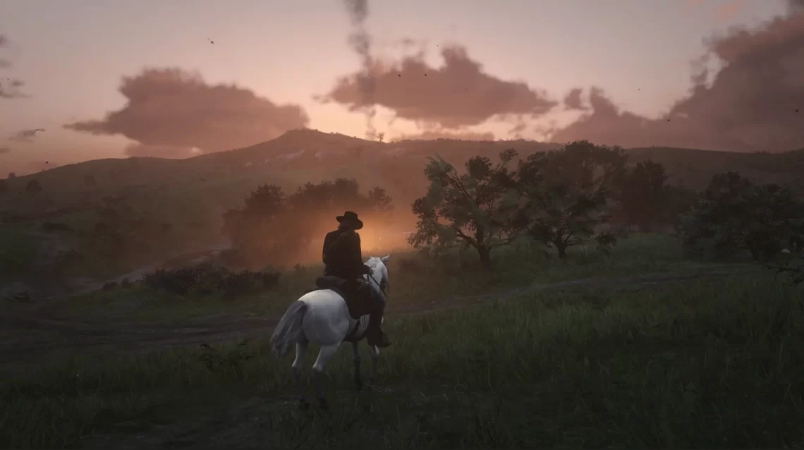 If any aspect of RDR2 is perfect, it's the light. Rich and golden, the sunsets and dawns immerse the player in the game's themes — nostalgia for a lost world; wonder at nature — drawing on the senses to create poignant emotion. That light, itself, is an allusion to a 19th-century artist who in turn inspired one of the game's most charming minor NPCs.